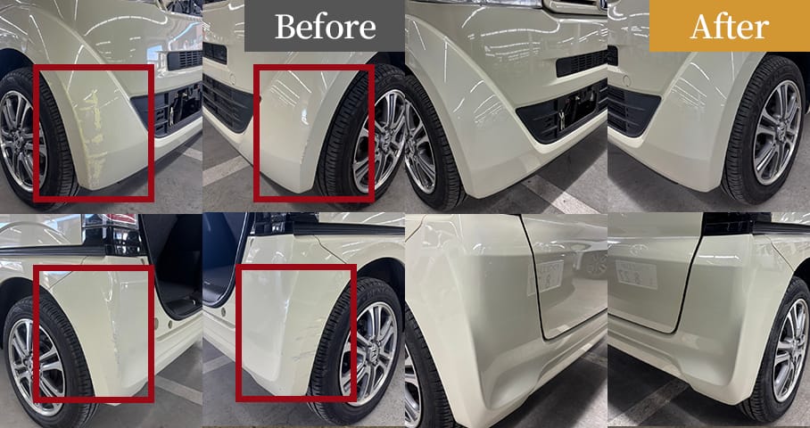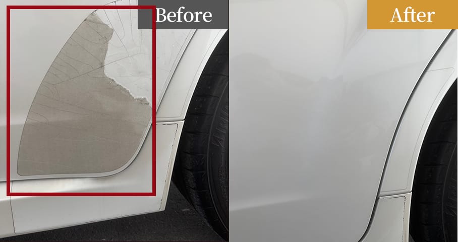 損傷範囲を見極め、下地処理から丁寧に作業しました。アイボリー系特有の色差に注意し、調色とぼかしを入念に実施。隣接パネルとの質感やラインを整え、修理箇所が分からない自然な仕上がりに復元しました。